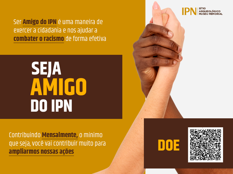Escolha o seu plano de amigo do IPN e faça a diferença! Torne-se um amigo do IPN e: Receba descontos em produtos exclusivos do instituto, como camisas, vestidos, canecas e chaveiros. Participe de sorteios e concursos culturais exclusivos para membros do clube. Tenha acesso a conteúdo exclusivo sobre a história afro-brasileira e as atividades do instituto. Como funciona: Escolha o seu plano: Amigo guardião da memória: R$ 10,00 mensais. Amigo herdeiro da resistência: R$ 15,00 mensais. Amigo fênix negra: R$ 25,00 mensais. Pagamento automático: O valor da sua contribuição será debitado automaticamente do seu cartão de crédito, sem a necessidade de gerar boletos ou se preocupar com atrasos.Seu apoio é fundamental: Sua ajuda é essencial para mantermos as portas do Instituto Pretos Novos abertas.Como uma organização independente, contamos com a colaboração da comunidade para garantir a preservação da história e da cultura afro-brasileira. Junte-se a nós e faça a diferença! Seja um Amigo do IPN hoje mesmo!